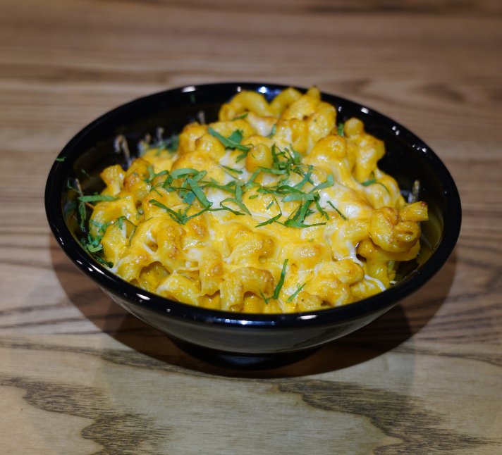 Creamy mac and cheese infused with warm Indian spices, finished with a rich masala blend.